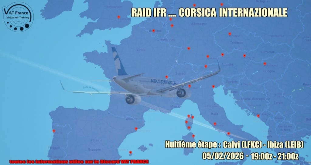 VATFrance organise des Raids IFR et des vols VFR en réseau que je relaie ici .( Le vol sera effectué connecté en ligne au réseau ATC VATSIM ou IVAO : on choisit le réseau le soir du vol en fonction de la couverture de controle )