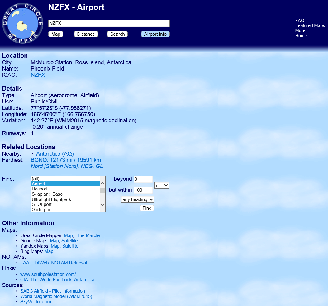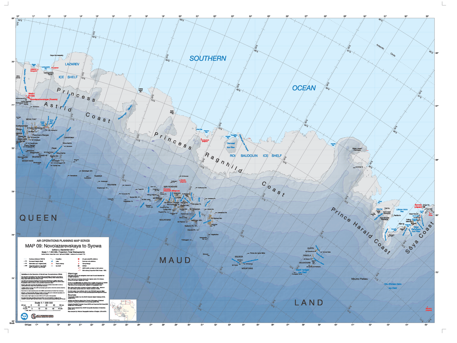 Un site superbe , Australian Antarctic data service , donne des cartes à utiliser pour les operations aériennes. :
