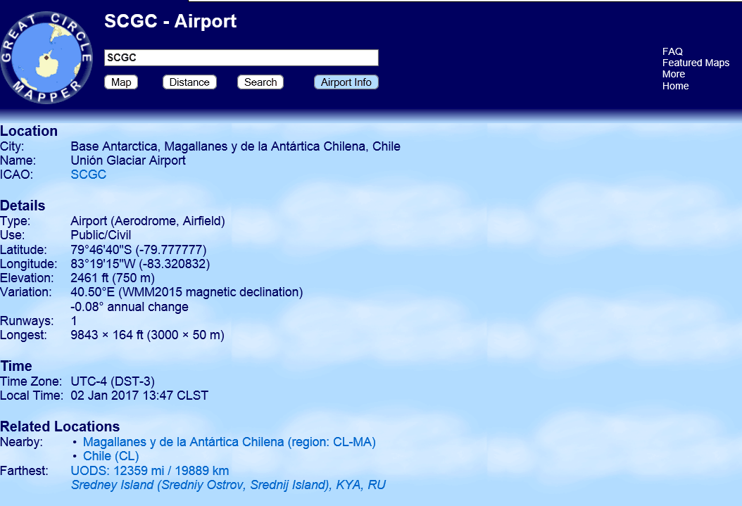 Cet aeroport dessert la base de ALE (Antartic Logistics and Expeditions) , sucesseur de ANI (Adventure Netwoork International): cette compagnie utilise aussi un Ilyushin 76-MD .