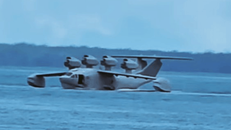 Il s'agit d'un avion à effet de sol construit par les russes pour remonter les grands fleuves et/ou voler en mer côtière ou sur les grands lacs.