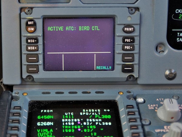 Le système de communication contrôleur-pilote par liaison de données (CPDLC) est un système de liaison de données bidirectionnelle permettant aux contrôleurs de transmettre des messages « stratégiques » non urgents à un avion, en remplacement des communications vocales . Le message s'affiche sur un écran du poste de pilotage.