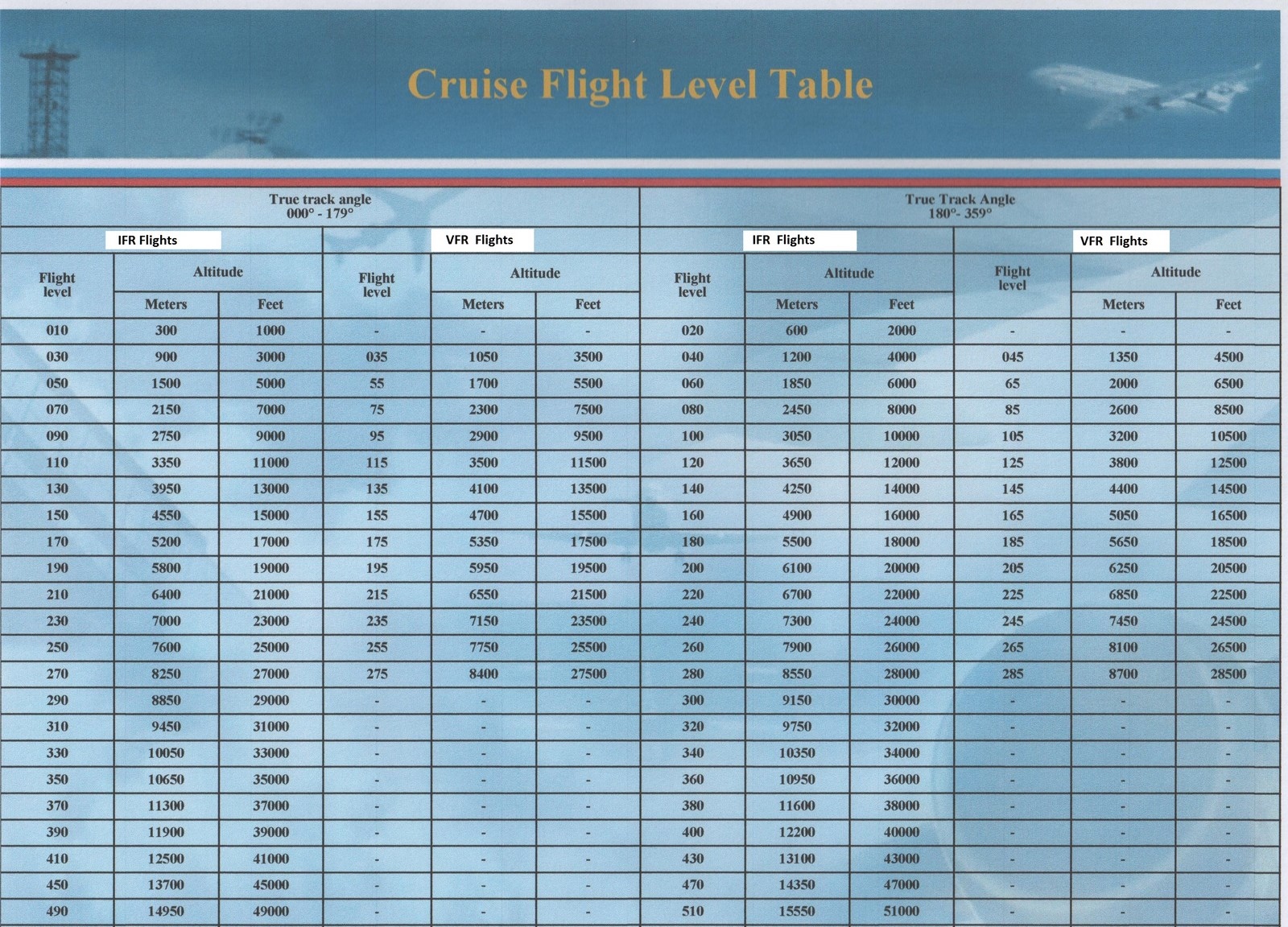 China RVSM Flight Level Allocation Scheme (FLAS) is based on metric flight level. Pilots are advised to be familiar with the China RVSM FLAS and the metric altitude system prior operating in Chinese airspace, and also keeping a copy of China RVSM FLAS chart handy during flight operations in the Chinese airspace. The chart may be viewed below,""